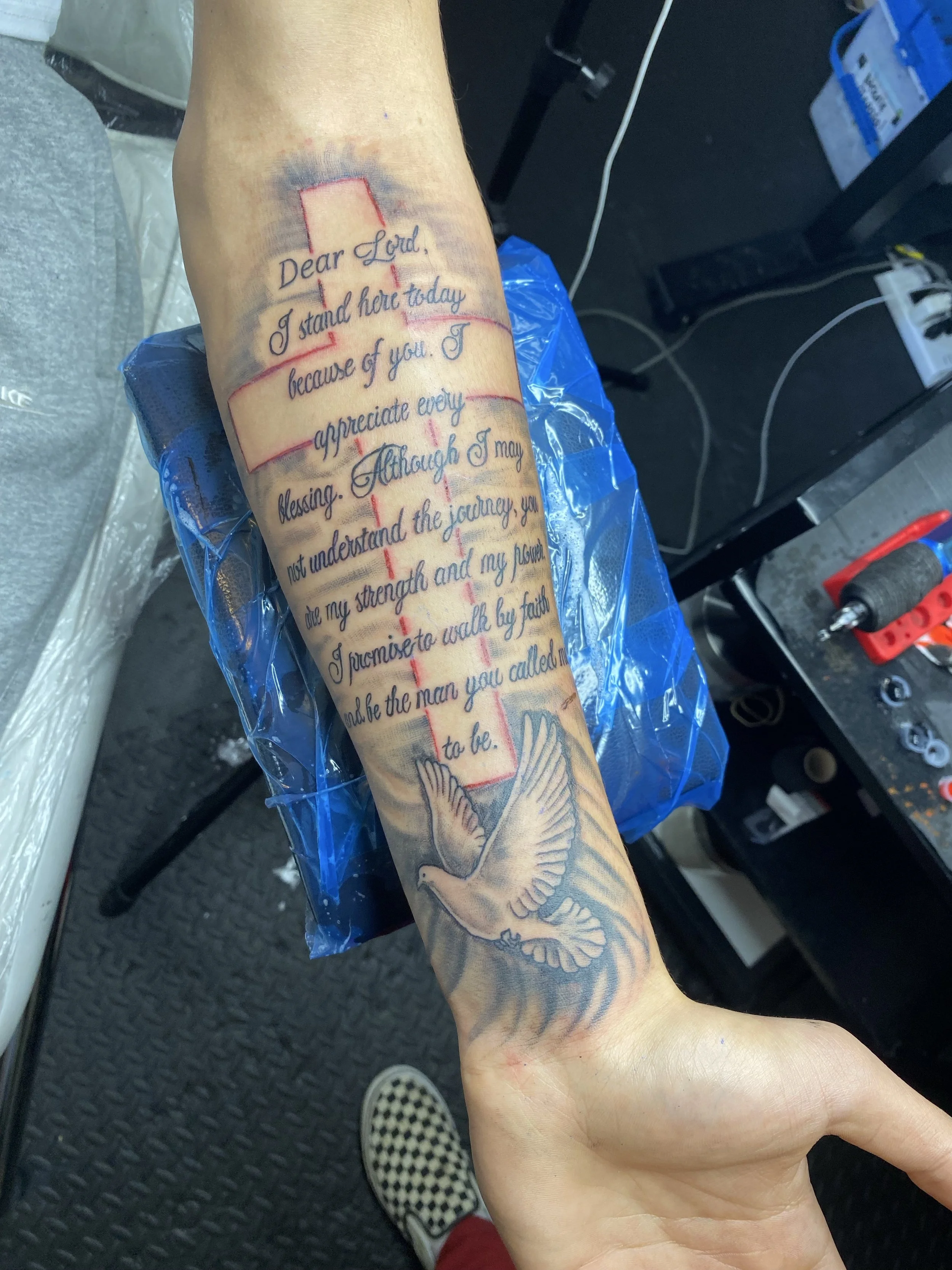 When you book a 4 hour session or longer, get a separate small tattoo (15 mins or less) for FREE. It can be script, symbols, small drawings; YOU choose. Small tattoo to be done the same day. Friday appointments only. Must book in advance. Deposit required.